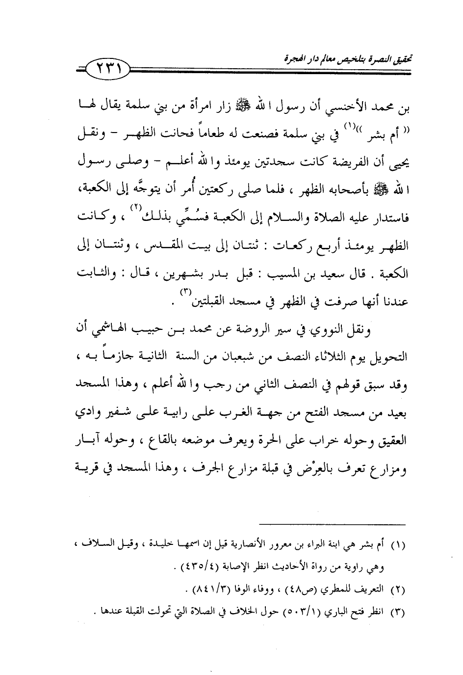 (3) انظر فتح الباري (503/ 1) حول الخلاف في الصلاة التي تحولت القبلة عندها.