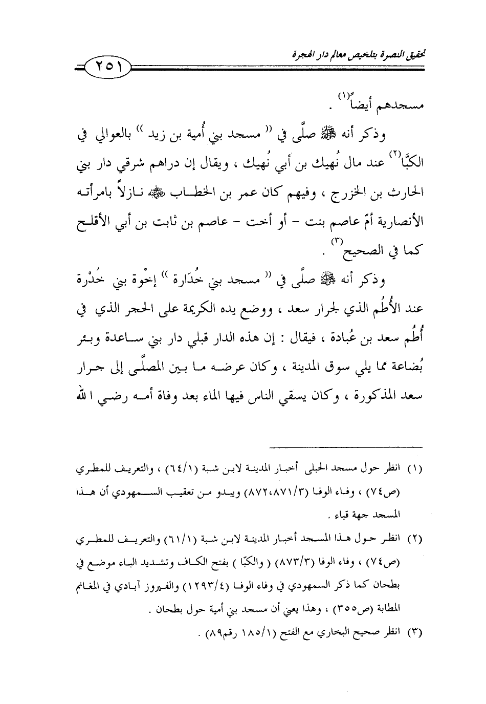 (1) انظر حول مسجد الحبلى أخبار المدينة لابن شبة (1/ 64)، والتعريف للمطري (ص 74)، وفاء الوفا (3/ 871، 872) ويبدو من تعقيب السمهودي أن هذا المسجد جهة قباء.