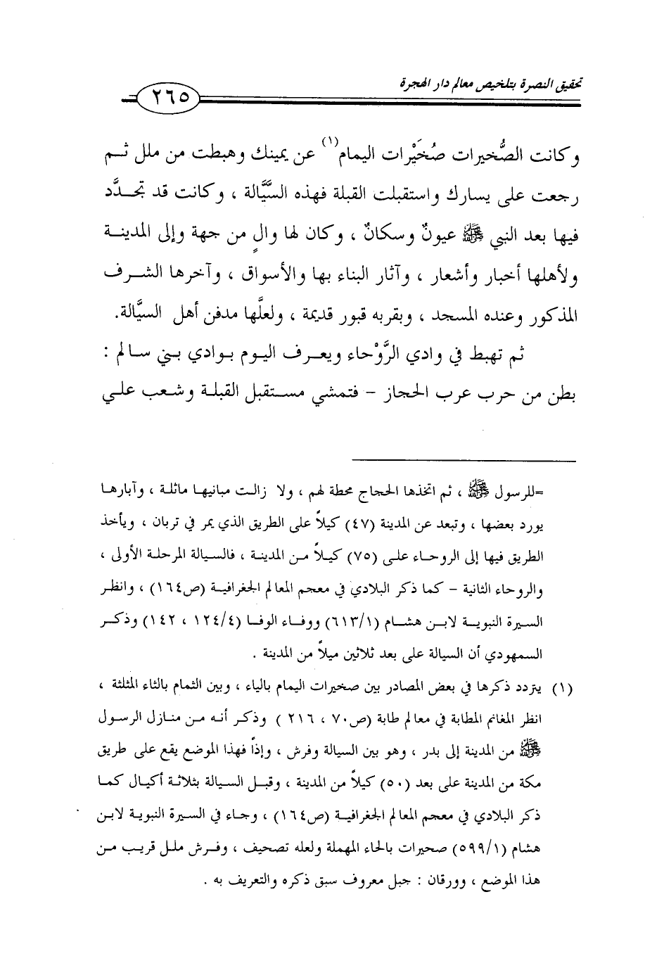 (1) يتردد ذكرها في بعض المصادر بين صخيرات اليمام بالباء، وبين الثمام بالثاء المثلثة، انظر المغانم المطابة في معالم طابة (ص 70، 216) وذكر أنه من منازل الرسول صلى الله عليه وسلم من المدينة إلى بدر، وهو بين السيالة وفرش، واذا فهذا الموضع يقع على طريق مكة من المدينة على بعد (50) كيلاً من المدينة، وقبل السيالة بثلاثة أكيال كما ذكر البلادي في معجم المعالم الجغرافية (ص 164)، وجاء في السيرة النبوية لابن هشام (1/ 599) صحيرات بالحاء المهملة ولعله تصحيف، وفرش ملل قريب من هذا الموضع، وورقان: جبل معروف سبق ذكره والتعريف به.