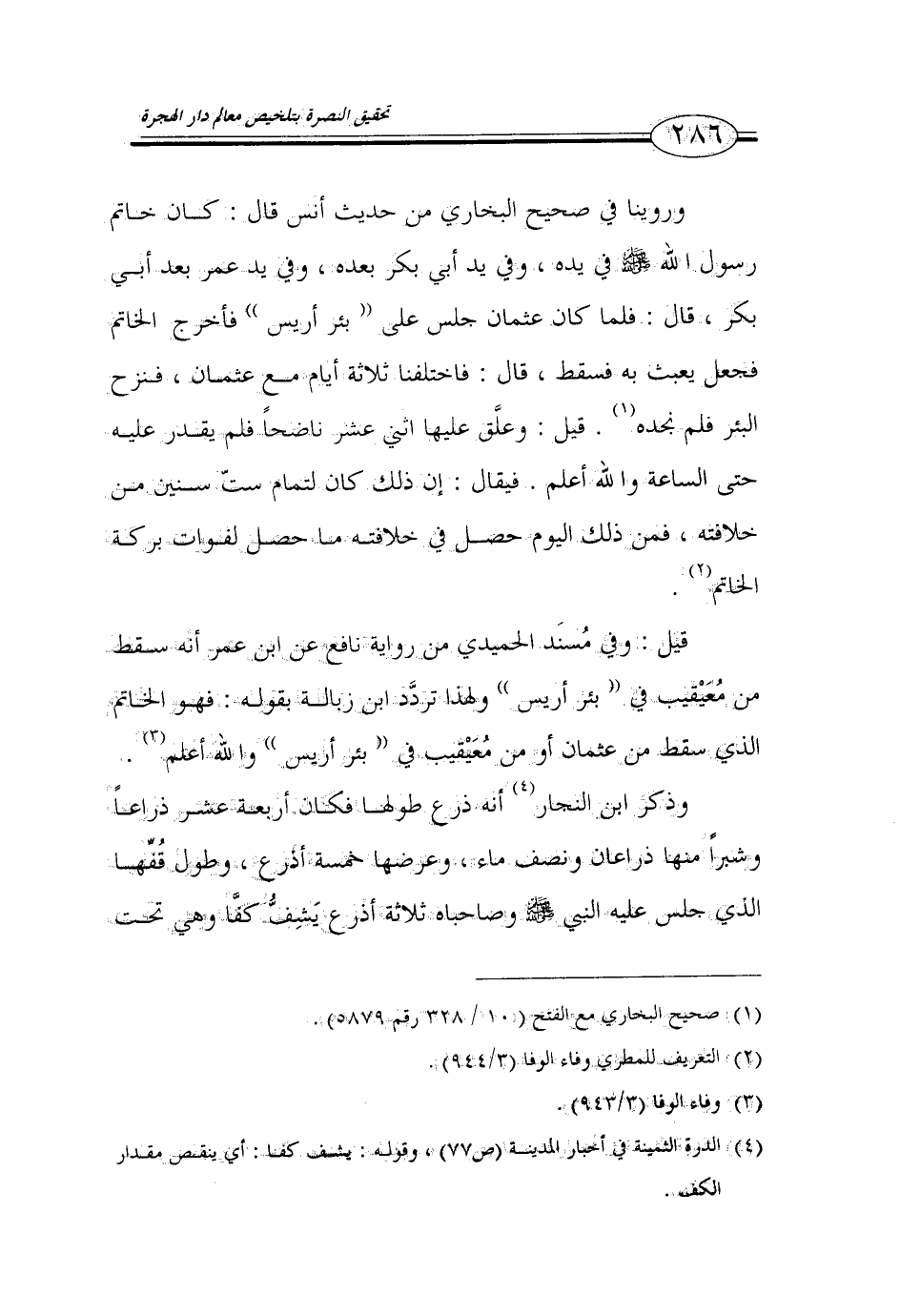 (4) الدرة الثمينة في أخبار المدينة (ص 77)، وقوله: يشف كفا: أي ينقص مقدار الكف.