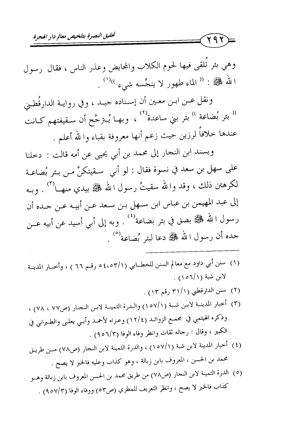 (1) سنن أبي داود مع معالم السنن للخطابي (1/ 53، 54 رقم 66)، وأخبار المدينة لابن شبة (1/ 156).