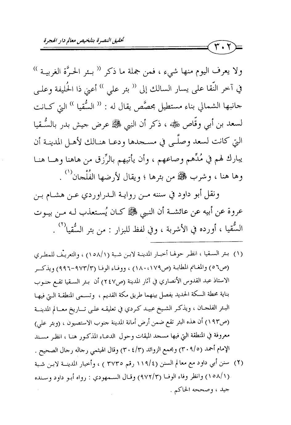 (2) سنن أبي داود مع معالم السنن (4/ 119 رقم 3735)، وأخبار المدينة لابن شبة (1/ 158) وانظر وفاء الوفا (3/ 972) وقال السمهودي: رواه أبو داود وسنده جيد، وصححه الحاكم.