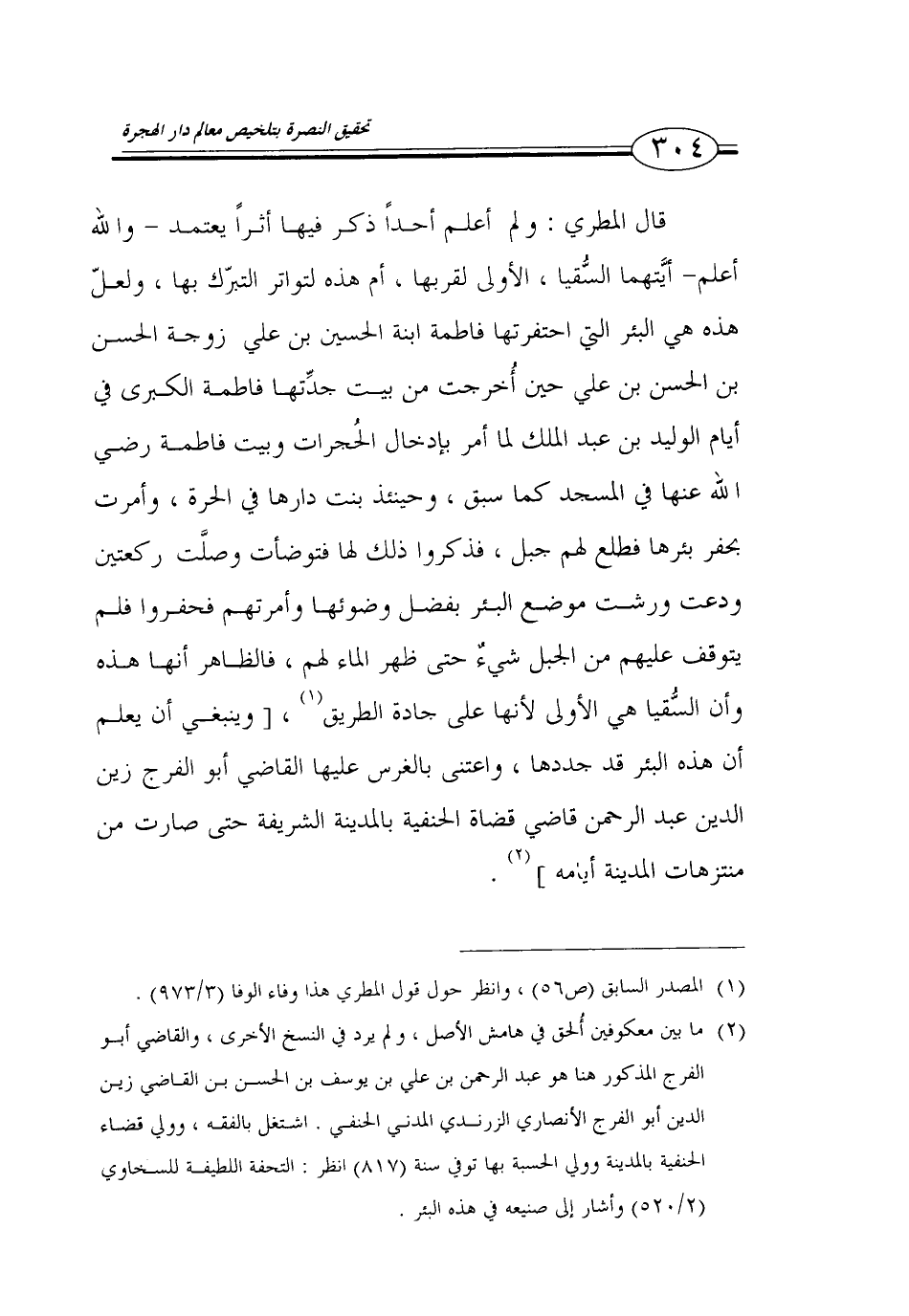 اشتغل بالفقه، وولي قضاء الحنفية بالمدينة وولي الحسبة بها توفي سنة (817) انظر: التحفة اللطيفة للسخاوي (2/ 520) وأشار إلى صنيعه في هذه البئر.