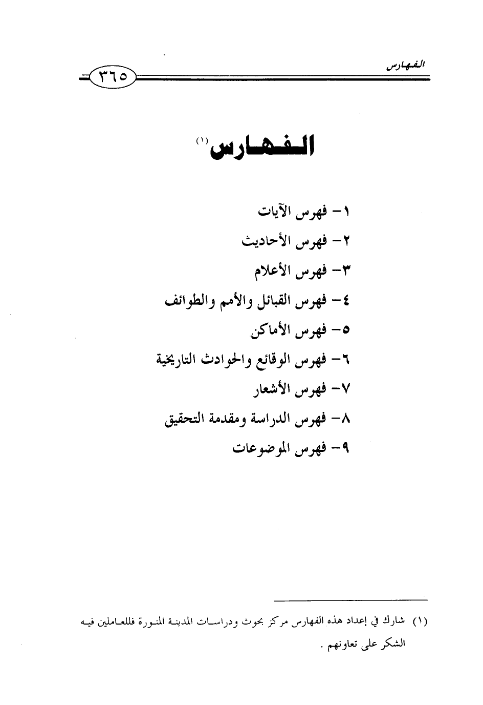 (1) شارك في اعداد هذه الفهارس مركز بحوث ودراسات المدينة المنورة فللعاملين فيه الشكر على تعاونهم.