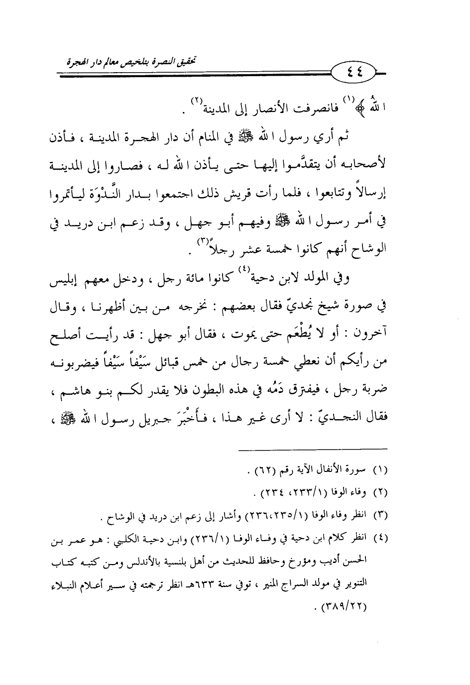 (3) انظر وفاء الوفا (1/ 235، 236) وأشار إلى زعم ابن دريد في الوشاح.