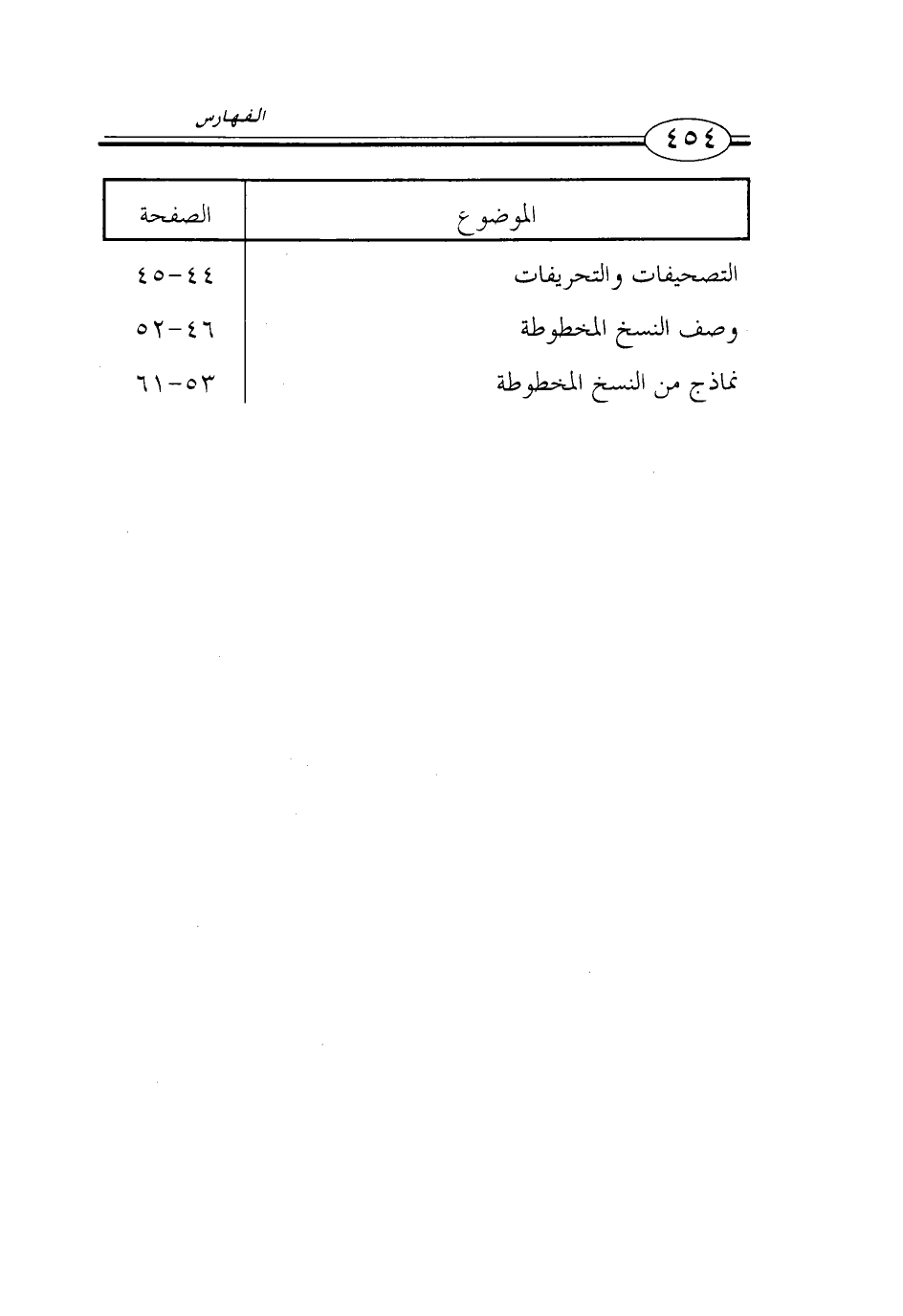 وصف النسخ المخطوطة 46 - 52 نماذج من النسخ المخطوطة 53 - 61…