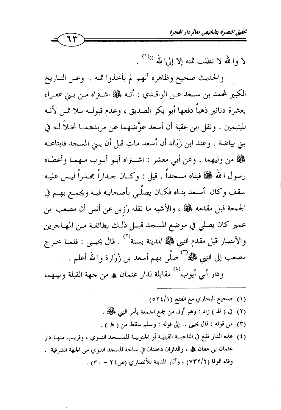 (4) هذه الدار تقع في الناحية القبلية أو الجنوبية للمسجد النبوي، وقريب منها دار عثمان بن عفان، والداران دخلتان في ساحة المسجد النبوي من الجهة الشرقية.