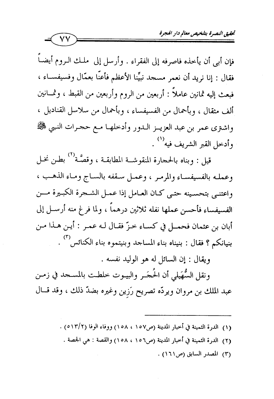 (1) الدرة الثمينة في أخبار المدينة (ص157، 158) ووفاء الوفا (2/ 513).