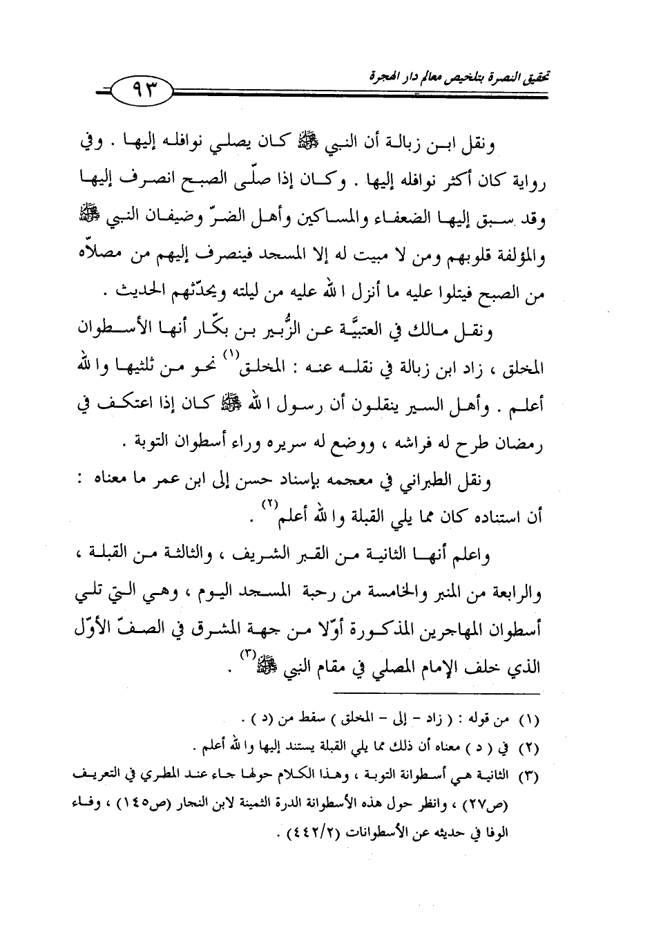 (3) الثانية هي اسطوانة التوبة، وهذا الكلام حولها جاء عند المطري في التعريف (ص27)، وانظر حول هذه الاسطوانة الدرة الثمينة لابن النجار (ص145)، وفاء الوفا في حديثه عن الاسطوانات (44/ 2).