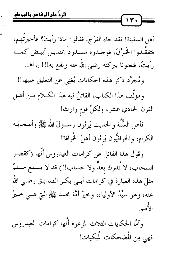 وقول هذا القائل عن كرامات العيدروس أنَّها (كقطر السحاب، لا تُدرك بِعدٍّ ولا حساب!!) قد لا يسمع مسلمٌ مثلَ هذه العبارة في كرامات أبي بكر الصديق رضي الله عنه، وهو سيِّدُ الأولياء، وخيرُ أمَّة محمد صلى الله عليه وسلم التي هي خيرُ الأُمم.