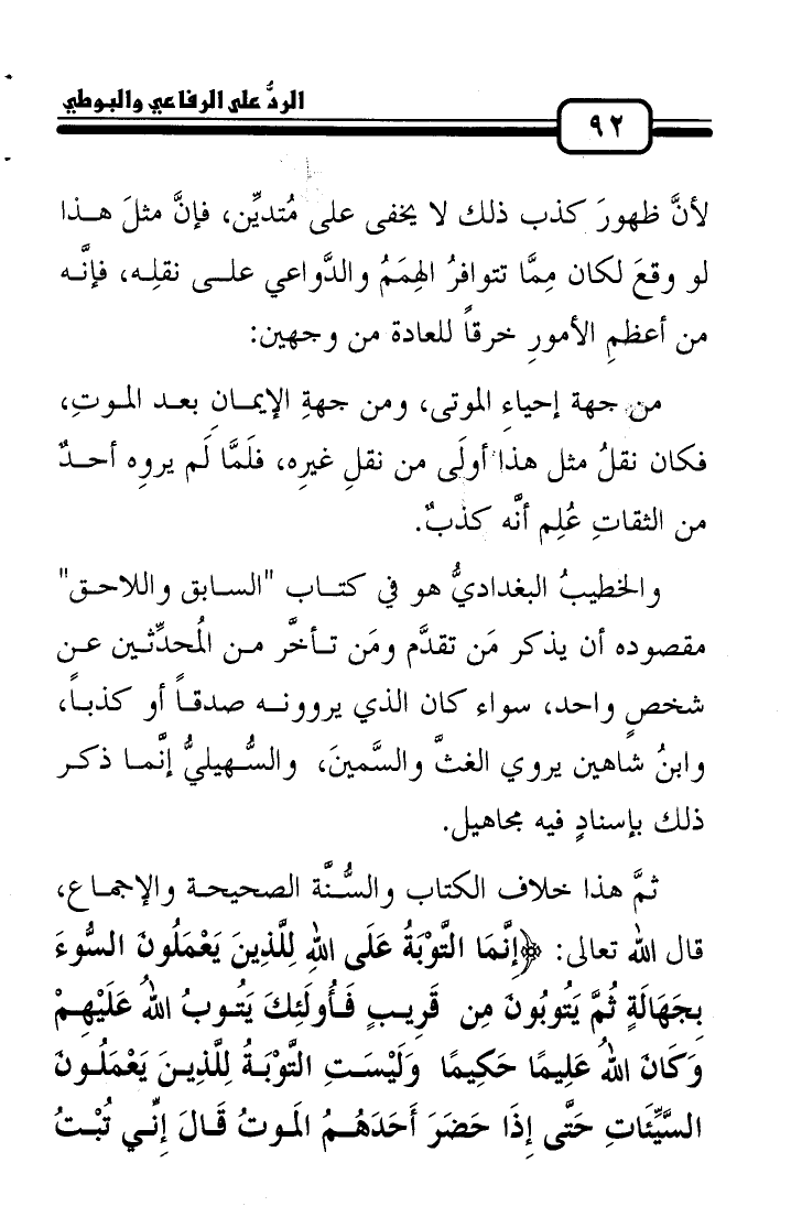 كتاب الرد على الرفاعي والبوطي في كذبهما على أهل السنة ودعوتهما إلى البدع والضلال