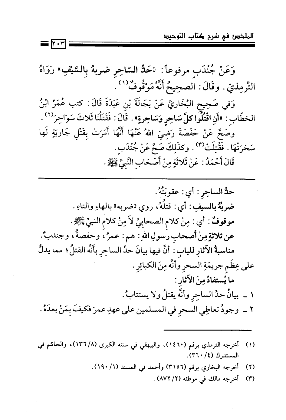 1- بيان حد الساحر وأنه يُقتل ولا يُستتاب.
