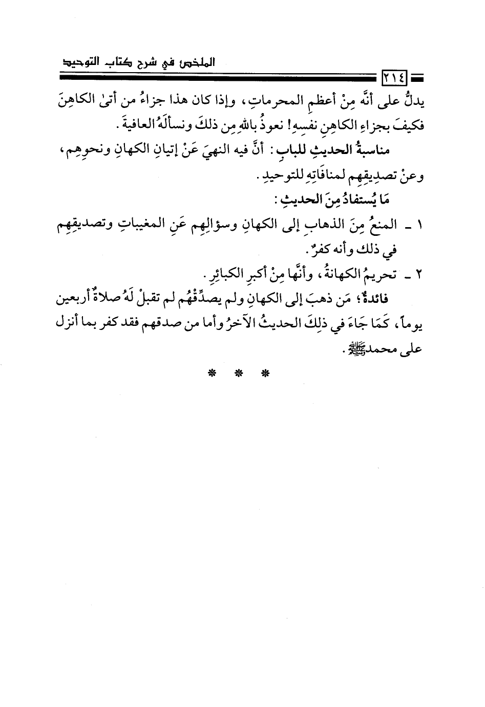 فائدة؛ من ذهب إلى الكهّان ولم يصدقهم لم تقبل له صلاة أربعين يوماً، كما جاء في ذلك الحديث الآخر وأما من صدّقهم فقد كفر بما أنزل على محمد –صَلَّى اللَّهُ عَلَيْهِ وَسَلَّمَ-.