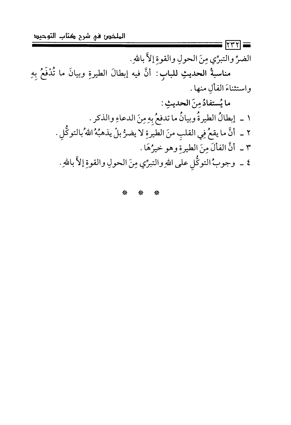 1- إبطال الطيرة وبيان ما تدفع به من الدعاء والذكر.