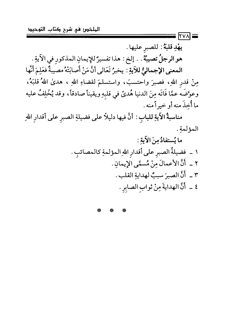 3- أن الصبر سببٌ لهداية القلب.