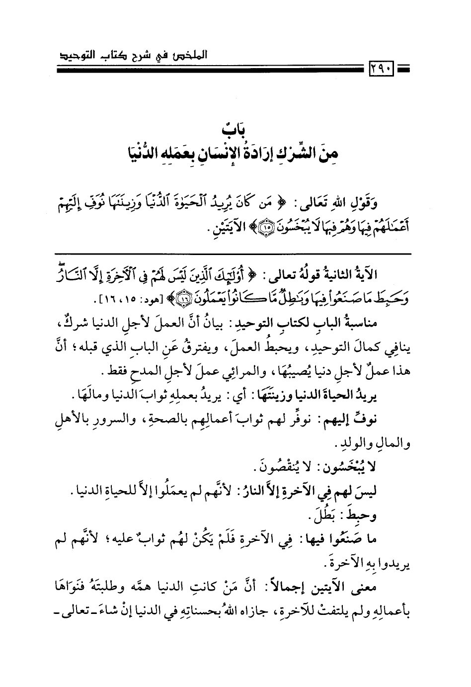 باب من الشرك إرادة الإنسان بعمله الدنيا