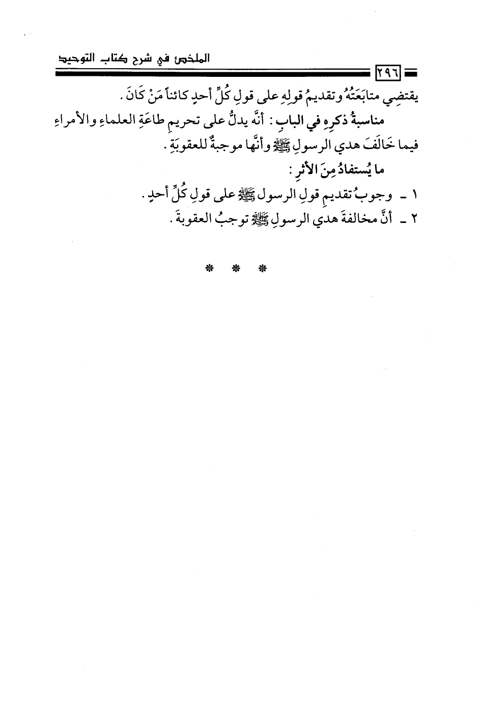 مناسبة ذكره في الباب: أنه يدل على تحريم طاعة العلماء والأمراء فيما خالف هدي الرسول –صَلَّى اللَّهُ عَلَيْهِ وَسَلَّمَ- وأنه موجبةٌ للعقوبة.