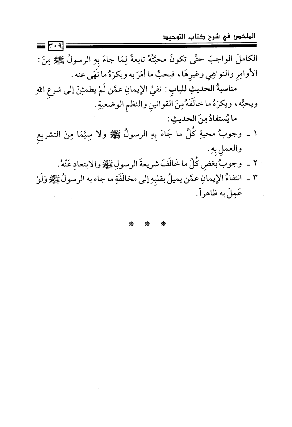 1- وجوب محبة كل ما جاء به الرسول –صَلَّى اللَّهُ عَلَيْهِ وَسَلَّمَ- ولا سيما من التشريع والعمل به.