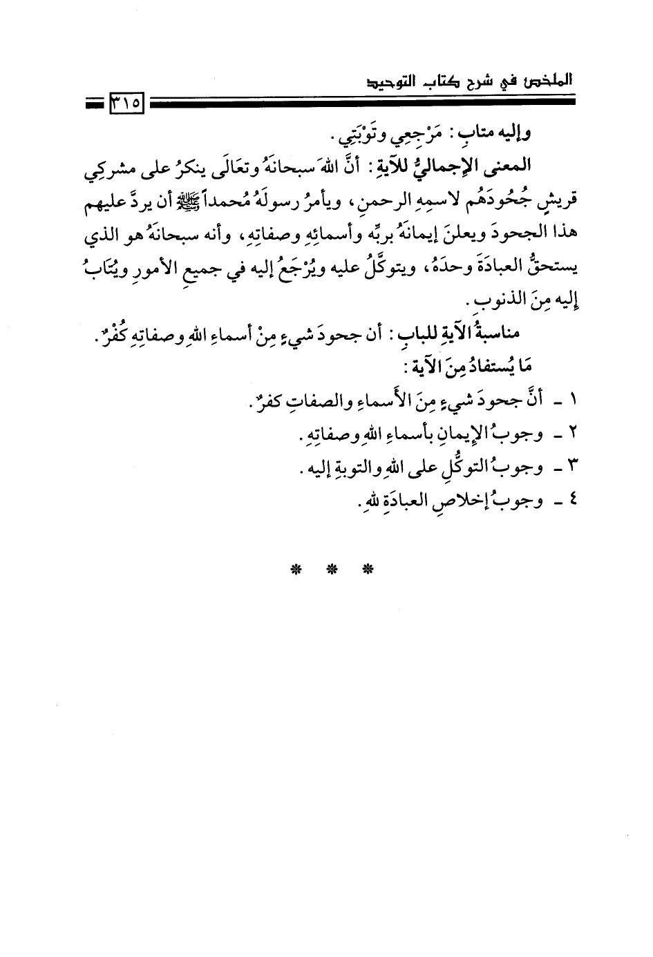 مناسبة الآية للباب: أن جحود شيء من أسماء الله وصفاته كفر.