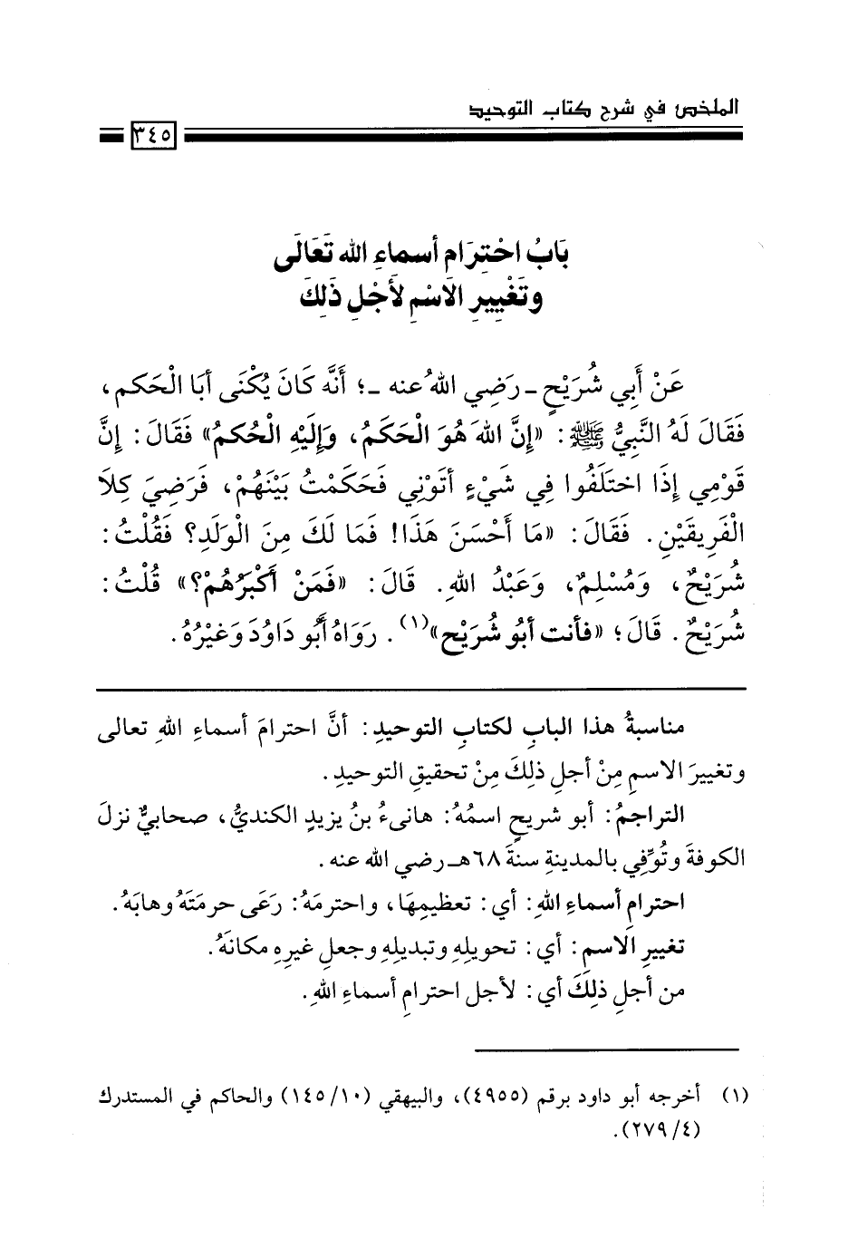 باب احترام أسماء الله وتغيير الاسم لأجل ذلك