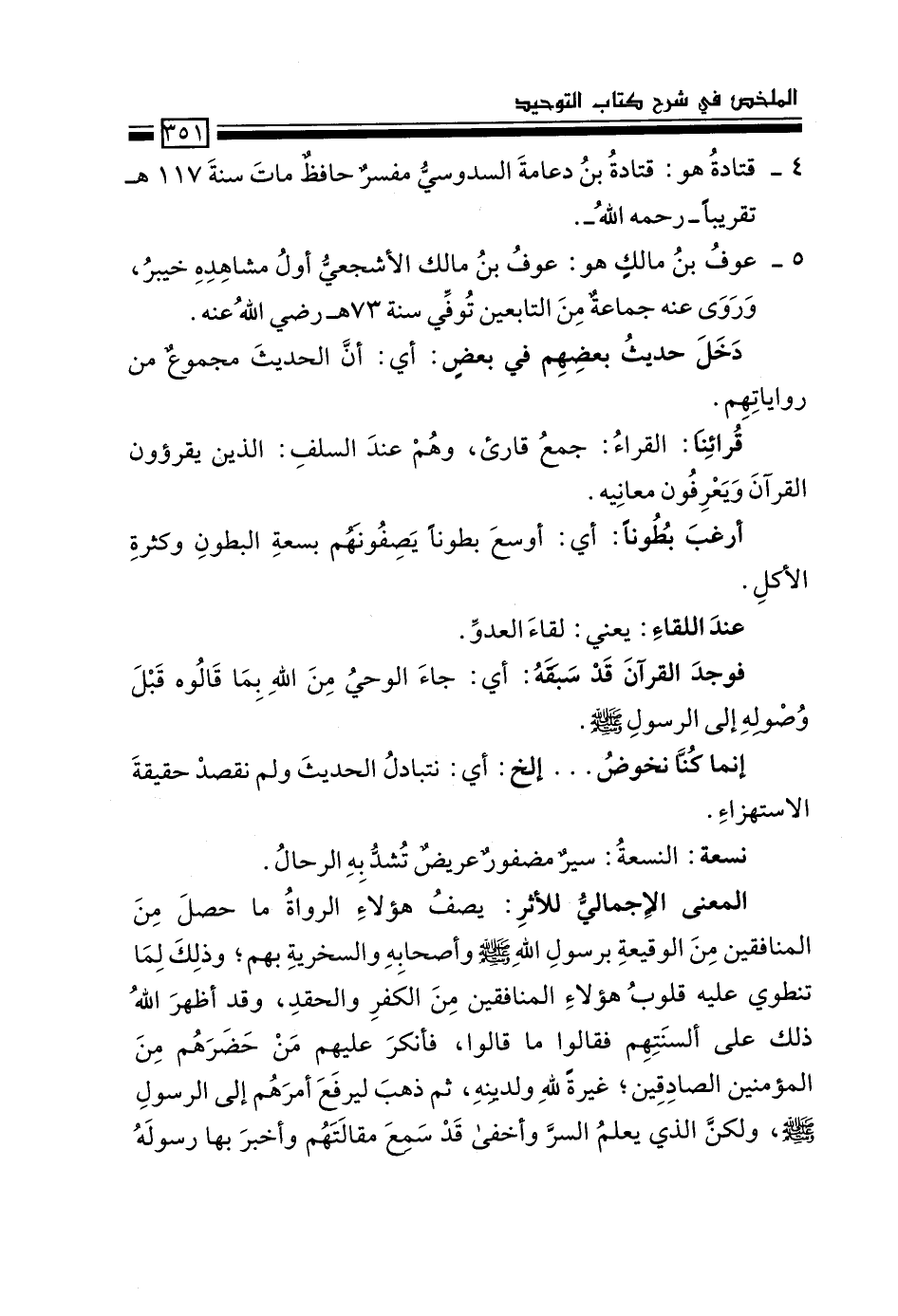 4- قتادة هو: قتادة بن دعامة السدوسي مفسِّر حافظ مات سنة 117هـ تقريباً –رحمه الله-.