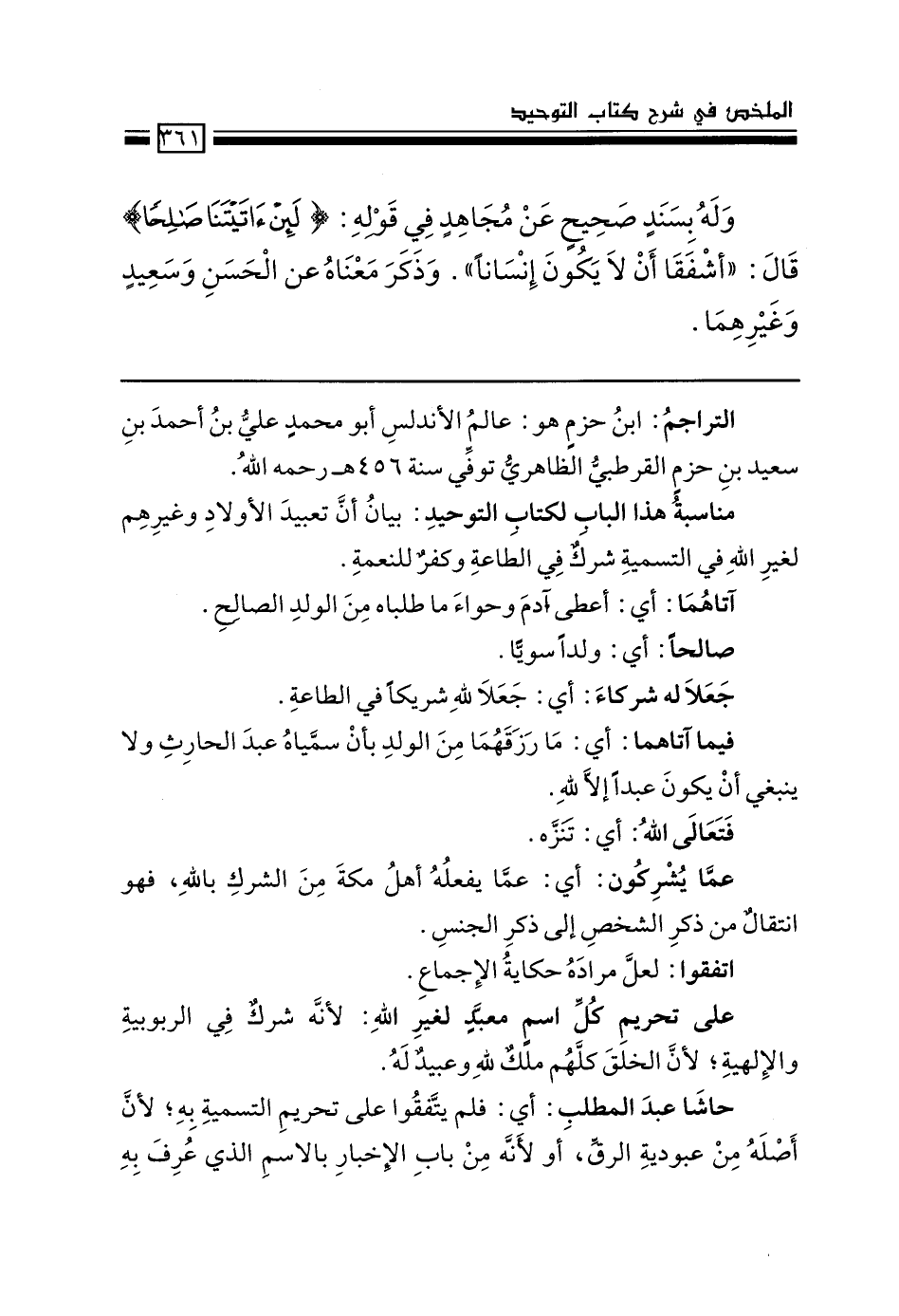وله بسند صحيح عن مجاهد في قوله: {لَئِنْ آتَيْتَنَا صَالِحاً} قال: "أشفقا ألا يكون إنساناً". وذكر معناه عن الحسن وسعيد وغيرهما.