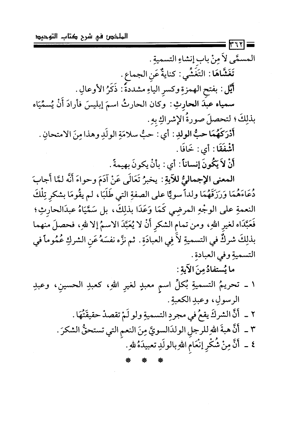 1- تحريم التسمية بكل اسمٍ معبّد لغير الله، كعبد الحسين، وعبد الرسول، وعبد الكعبة.