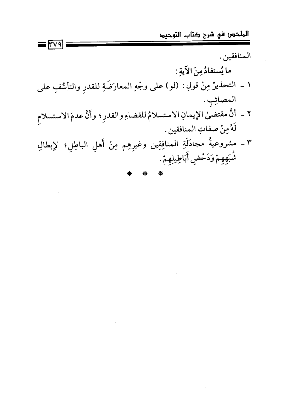 3- مشروعية مجادلة المنافقين وغيرهم من أهل الباطل؛ لإبطال شبَهِهم ودحض أباطيلهم.