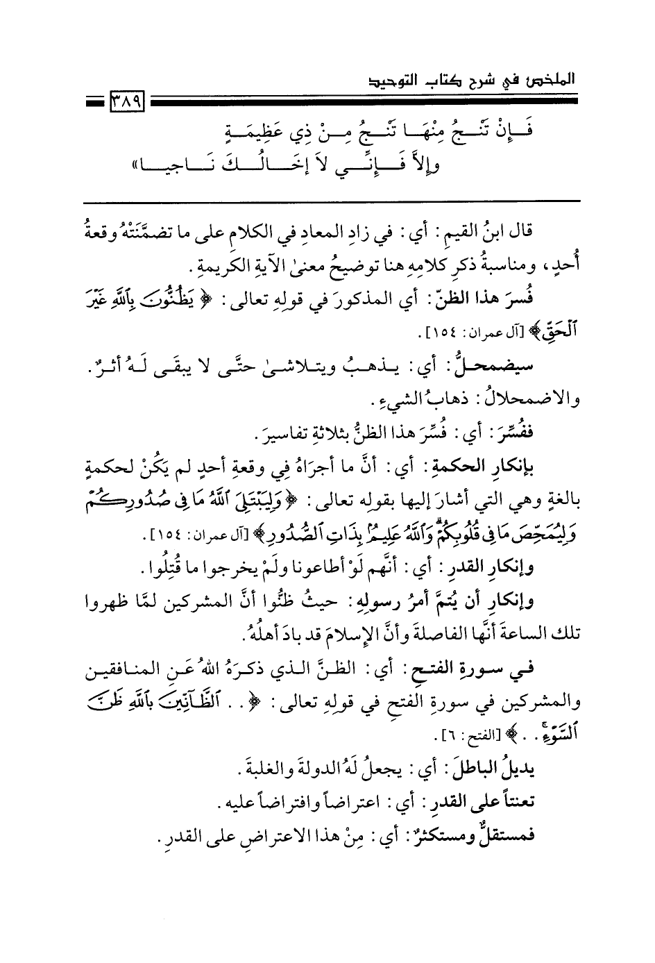 قال ابن القيم: أي: في زاد المعاد في الكلام على ما تضمنته وقعةُ أحُد، ومناسبة ذكر كلامه هنا توضيح معنى الآية الكريمة.