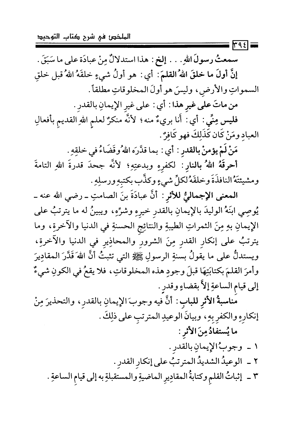 1- وجوب الإيمان بالقدر.