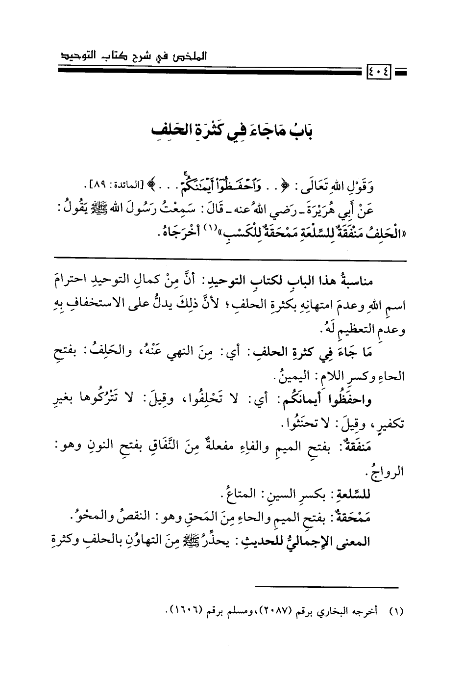 مناسبة هذا الباب لكتاب التوحيد: أن من كمال التوحيد احترام اسم الله وعدم امتهانه بكثرة الحلف؛ لأن ذلك يدل على الاستخفاف به وعدم التعظيم له.