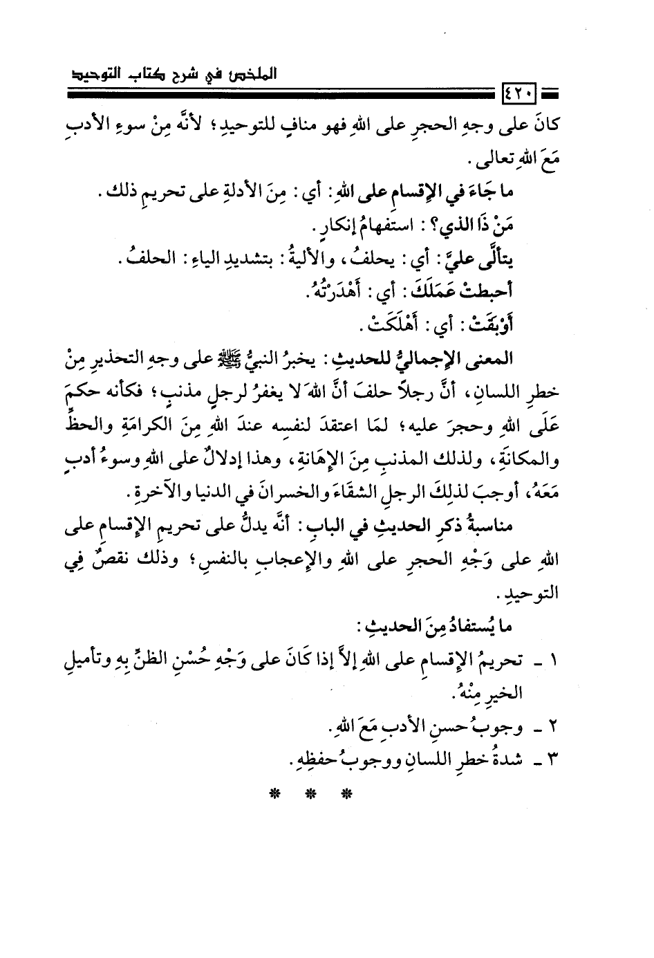 1- تحريم الإقسام على الله إلا إذا كان على وجه حسنِ الظنّ به وتأميل الخير منه.