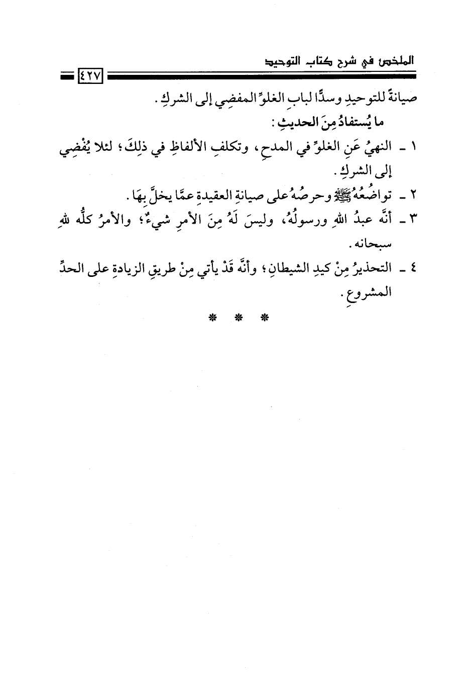 1- النهي عن الغلو في المدح، وتكلف الألفاظ في ذلك؛ لئلا يفضي إلى الشرك.