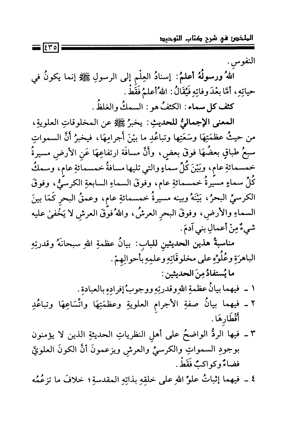 3- فيها الرد الواضح على أهل النظريات الحديثة الذين لا يؤمنون بوجود السماوات والكرسيّ والعرش ويزعمون أن الكون العلوي فضاءٌ وكواكبٌ فقط.
