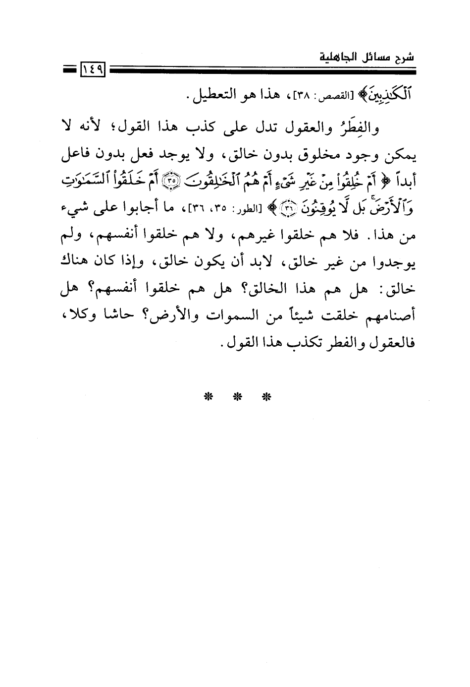 والفِطَرُ والعقول تدل على كذب هذا القول؛ لأنه لا يمكن وجود مخلوق بدون خالق، ولا يوجد فعل بدون فاعل أبداً {أَمْ خُلِقُوا مِنْ غَيْرِ شَيْءٍ أَمْ هُمُ الْخَالِقُونَ أَمْ خَلَقُوا السَّمَاوَاتِ وَالْأَرْضَ بَلْ لا يُوقِنُونَ} [الطور: 35،36] ، ما أجابوا على شيء من هذا. فلا هم خلقوا غيرهم، ولا هم خلقوا أنفسهم، ولم يوجدوا من غير خالق، لا بد أن يكون خالق، وإذا كان هناك خالق: هل هم هذا الخالق؟ هل هم خلقوا أنفسهم؟ هل أصنامهم خلقت شيئاً من السموات والأرض؟ حاشا وكلا، فالعقول والفطر تكذب هذا القول.