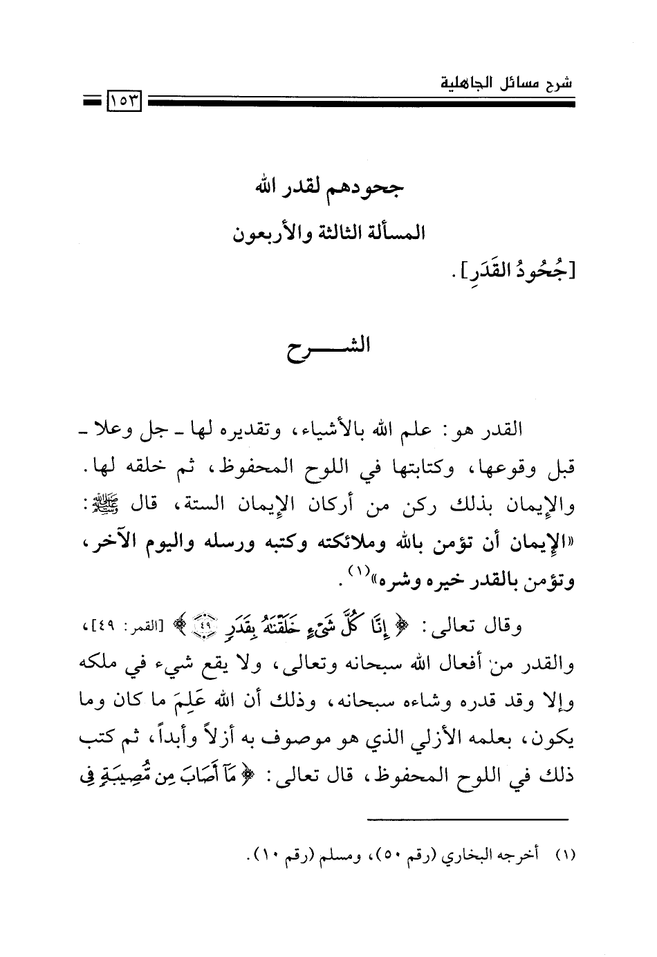 المسألة الثالثة والأربعون: جحودهم لقدر الله