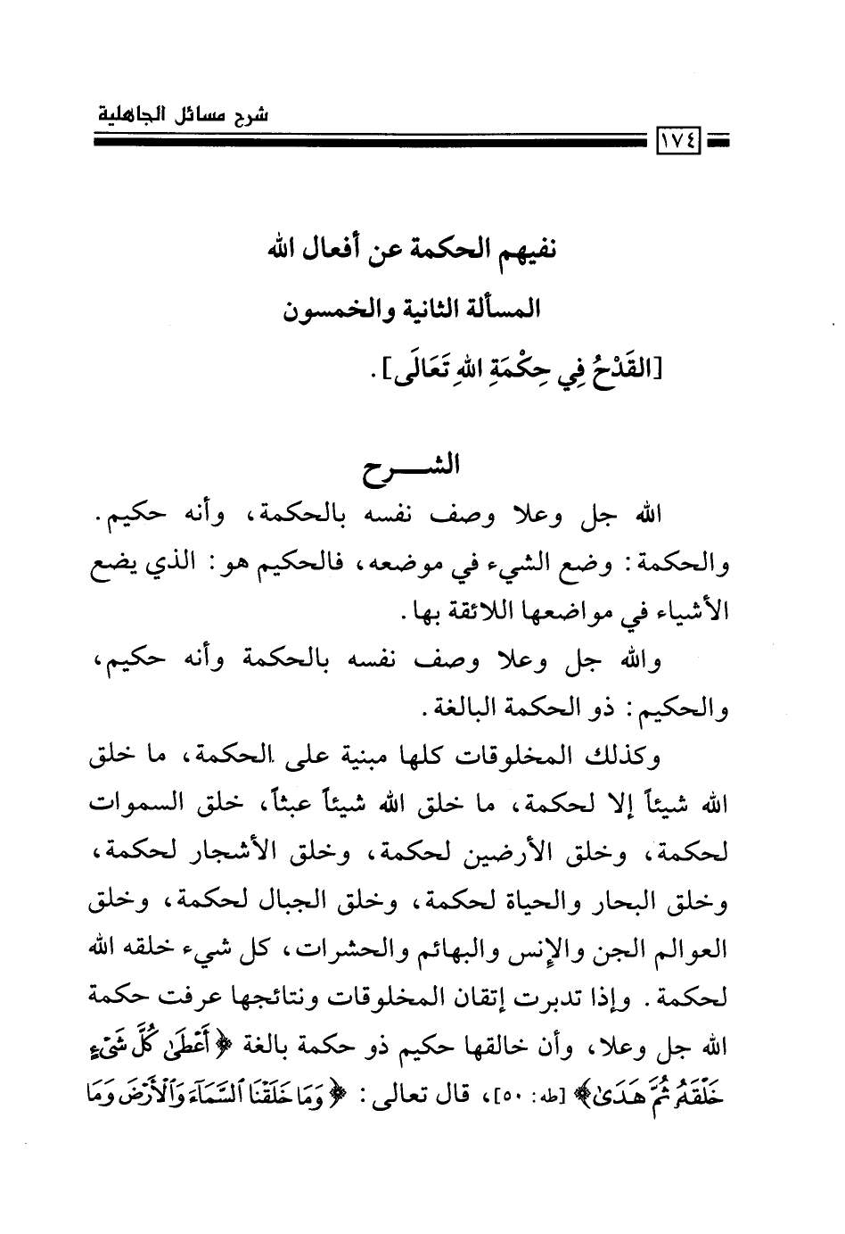 المسألة الثانية والخمسون: نفيهم الحكمة عن أفعال الله تعالى