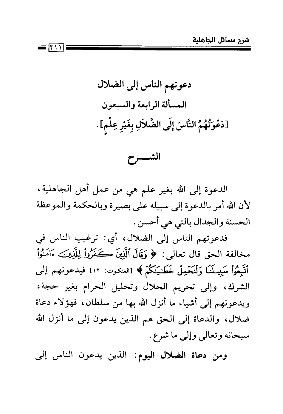 [دَعْوَتُهُمُ النَّاسَ إِلَى الضَّلاَلِ بِغَيْرِ عِلْمٍ] .