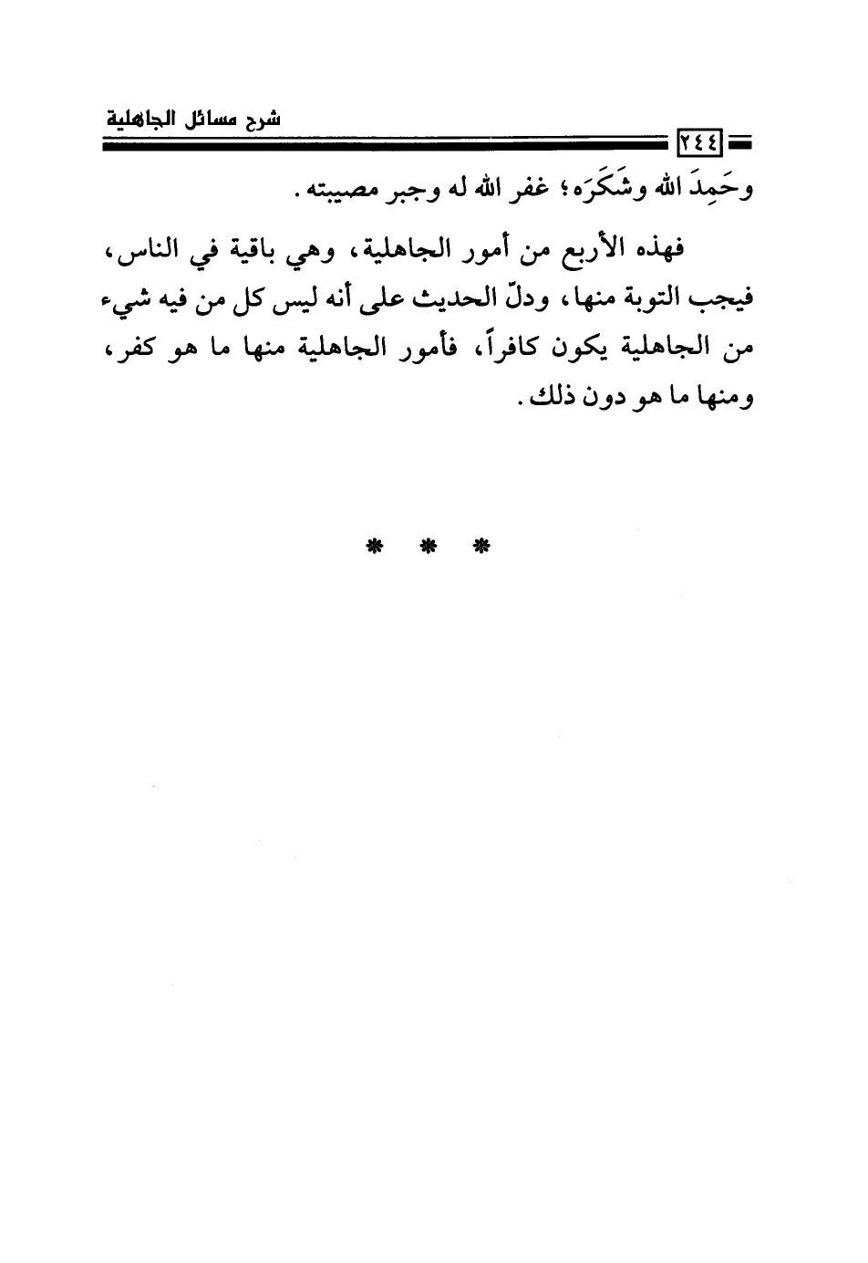 فهذه الأربع من أمور الجاهلية، وهي باقية في الناس، فيجب التوبة منها، ودلّ الحديث على أنه ليس كل من فيه شيء من الجاهلية يكون كافراً، فأمور الجاهلية منها ما هو كفر، ومنها ما هو دون ذلك.