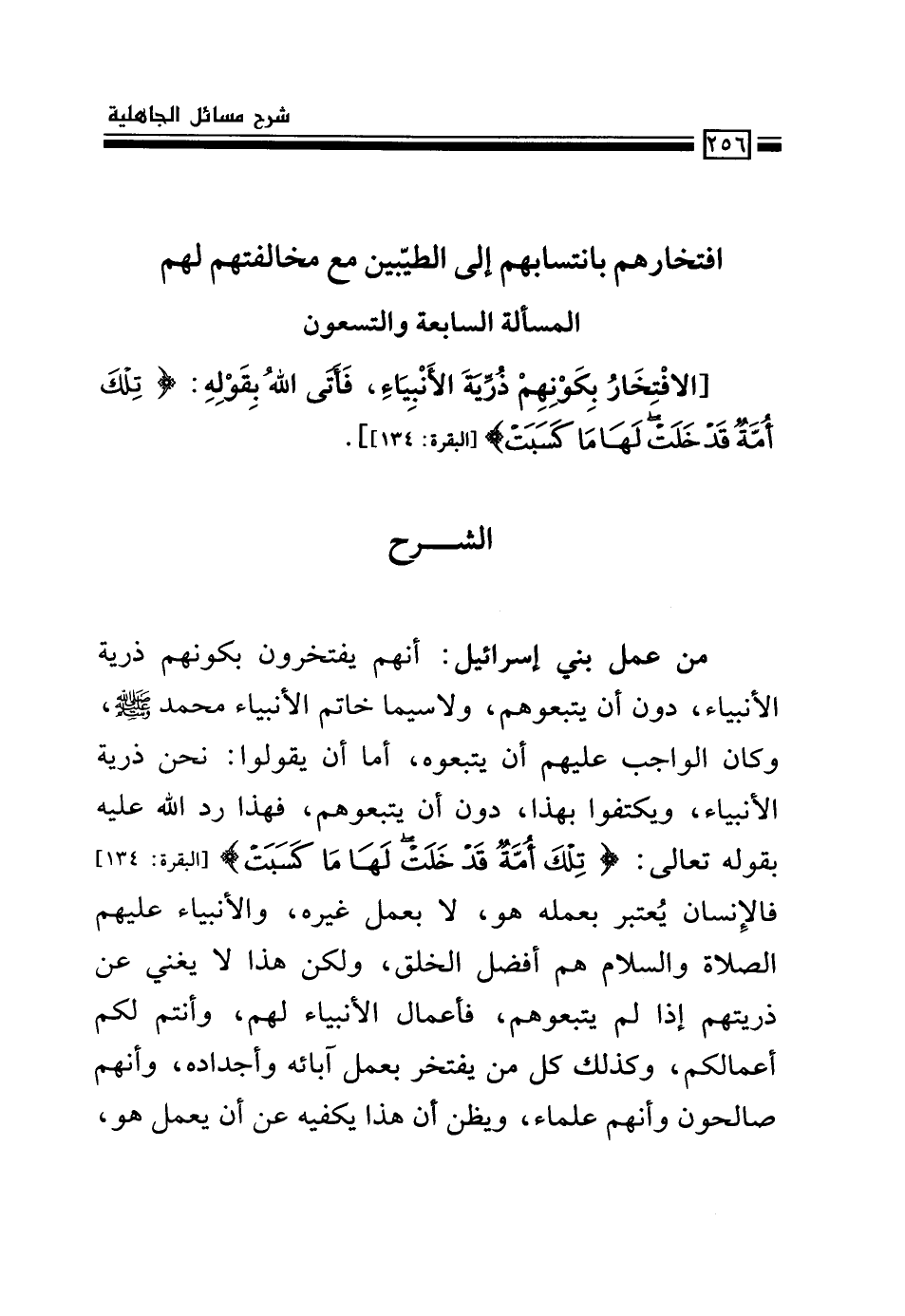 [الافْتِخَارُ بِكَوْنِهِمْ ذُرِّيَةَ الأَنْبِيَاءِ، فَأَتَى اللهُ بِقَوْلِهِ: {تِلْكَ أُمَّةٌ قَدْ خَلَتْ لَهَا مَا كَسَبَتْ} [البقرة: 134] .