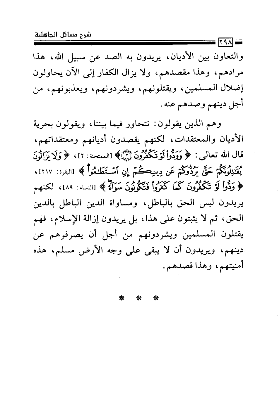 وهم الذين يقولون: نتحاور فيما بيننا، ويقولون بحرية الأديان والمعتقدات، لكنهم يقصدون أديانهم ومعتقداتهم، قال الله تعالى: {وَوَدُّوا لَوْ تَكْفُرُونَ} [الممتحنة: 2] ، {وَلا يَزَالُونَ يُقَاتِلُونَكُمْ حَتَّى يَرُدُّوكُمْ عَنْ دِينِكُمْ إِنِ اسْتَطَاعُوا} [البقرة: 217] ، {وَدُّوا لَوْ تَكْفُرُونَ كَمَا كَفَرُوا فَتَكُونُونَ سَوَاءً} [النساء: 89] ، لكنهم يريدون لبس الحق بالباطل، ومساواة الدين الباطل بالدين الحق، ثم لا يثبتون على هذا، بل يريدون إزالة الإسلام، فهم يقتلون المسلمين ويشردونهم من أجل أن يصرفوهم عن دينهم، ويريدون أن لا يبقى على وجه الأرض مسلم، هذه أمنيتهم، وهذا قصدهم.