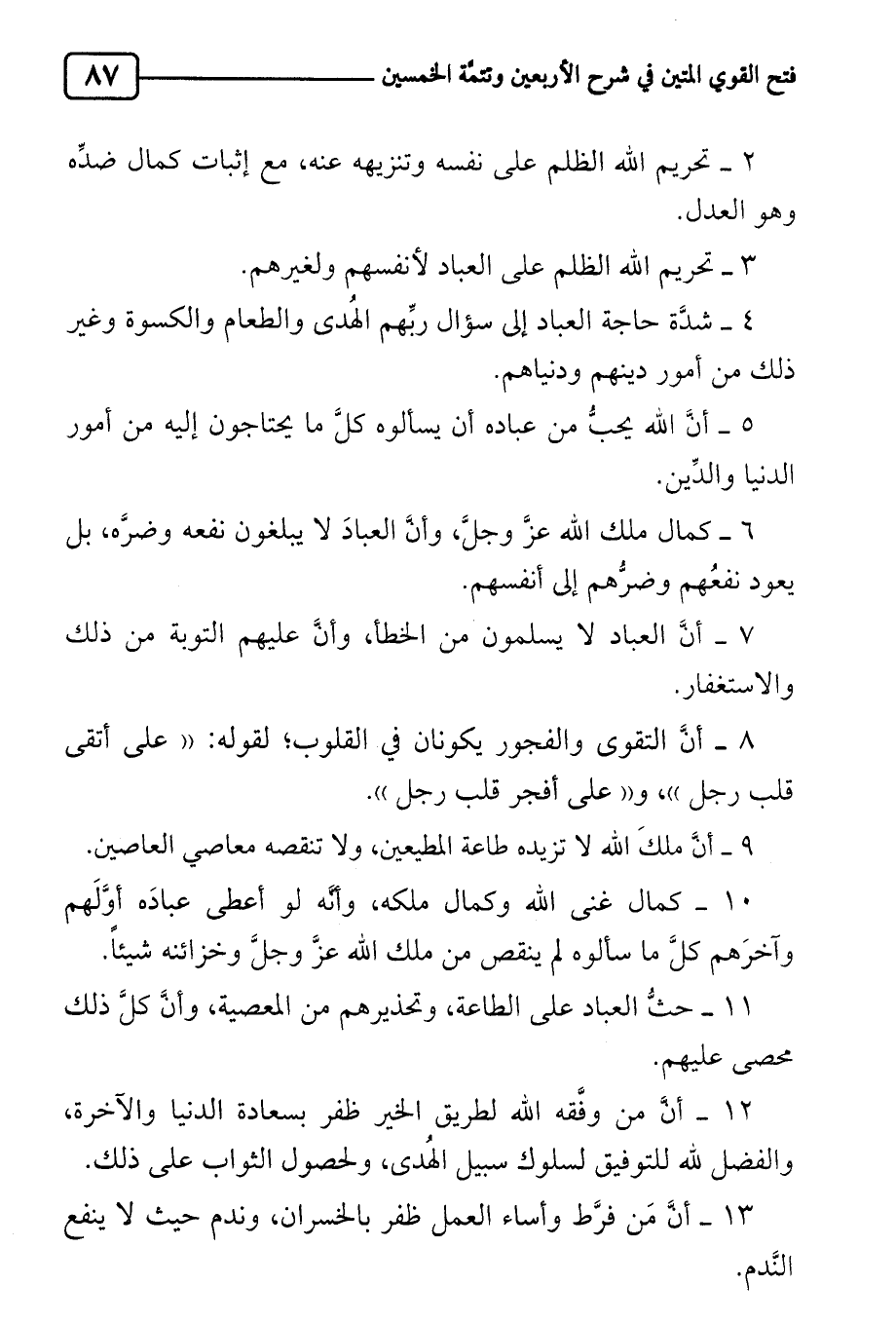 كتاب فتح القوي المتين في شرح الأربعين وتتمة الخمسين للنووي وابن رجب رحمهما الله