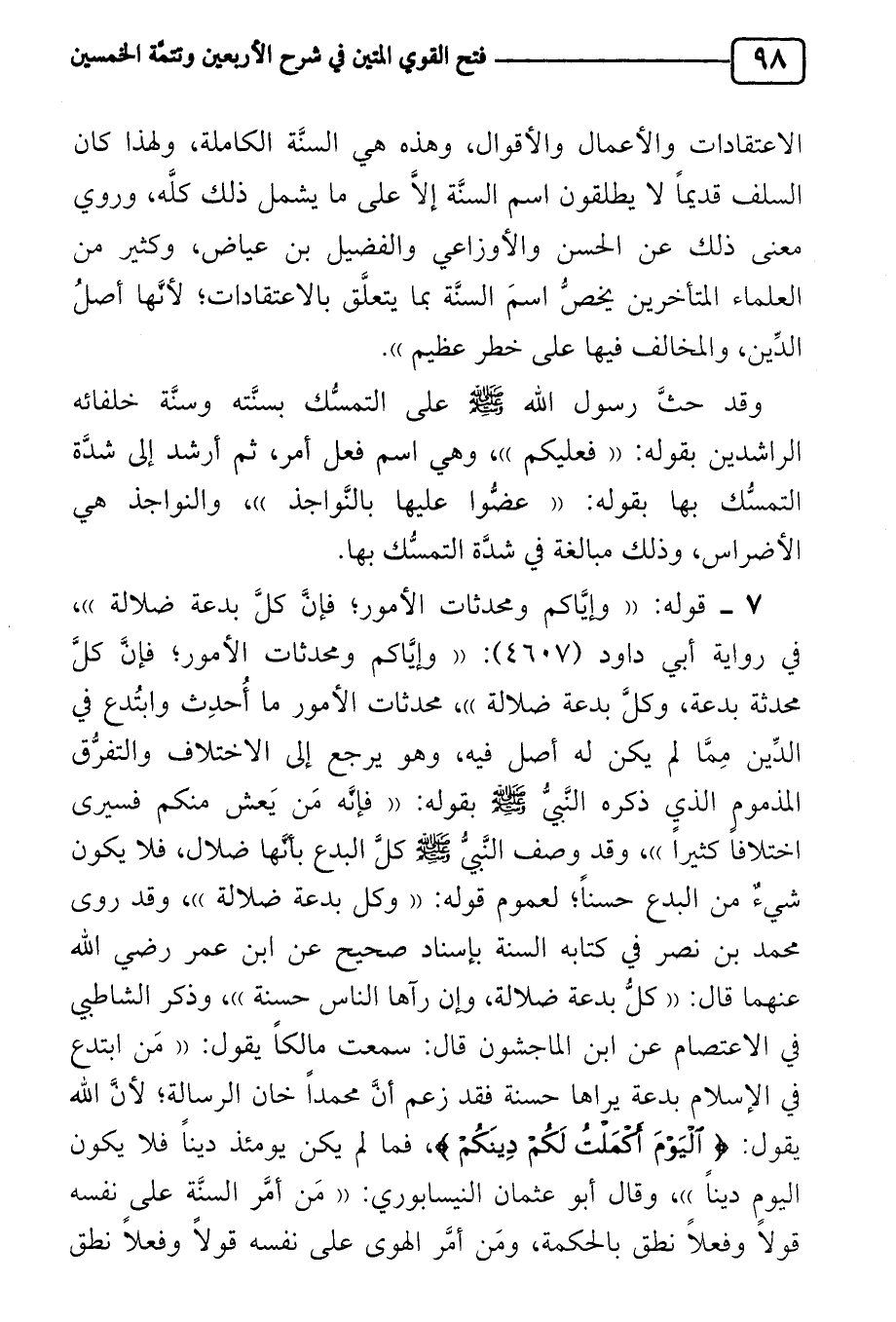 كتاب فتح القوي المتين في شرح الأربعين وتتمة الخمسين للنووي وابن رجب رحمهما الله