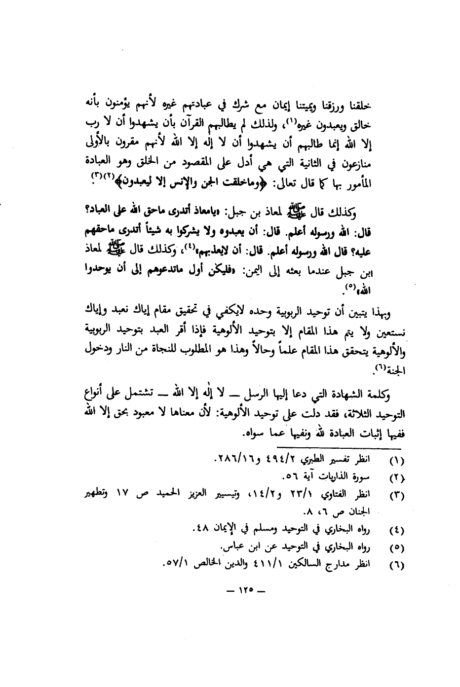 3 انظرالفتاوى 1/23 و2/14، وتيسير العزيز الحميد ص17 وتطهير الجنان ص6، 8.