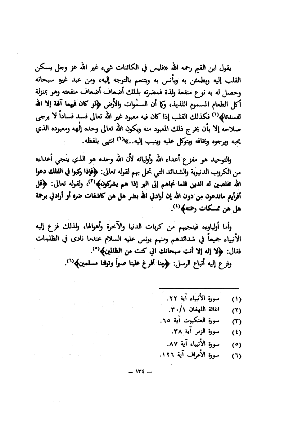 يقول ابن القيم رحمه الله: "فليس في الكائنات شيء غير الله عز وجل يسكن القلب إليه ويطمئن به ويأنس به ويتنعم بالتوجه إليه، ومن عبد غيره سبحانه وحصل له به نوع منفعة ولذة, فمضرته بذلك أضعاف أضعاف منفعته وهو بمنزلته أكل الطعام المسموم اللذيذ، وكما أن السموات والأرض {لَوْ كَانَ فِيهِمَا آلِهَةٌ إِلاَّ اللَّهُ لَفَسَدَتَا} 1 فكذلك القلب إذا كان فيه معبود غير الله تعالى فسد فسادًا لا يرجى صلاحه إلا بأن يخرج ذلك المعبود منه, ويكون الله تعالى وحده إلهه ومعبوده الذي يحبه ويرجوه ويخافه ويتوكل عليه وينيب إليه.."2 انتهى بلفظه.