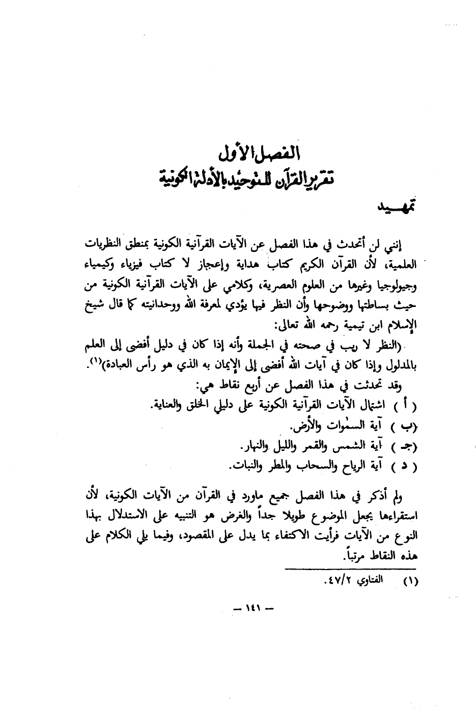 الفصل الأول: تقرير القرآن للتوحيد بالأدلة الكونية