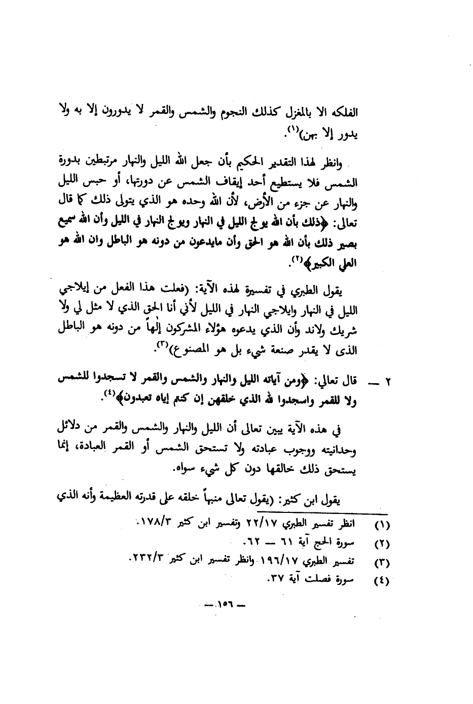 2- قال تعالى: {وَمِنْ آيَاتِهِ اللَّيْلُ وَالنَّهَارُ وَالشَّمْسُ وَالْقَمَرُ لا تَسْجُدُوا لِلشَّمْسِ وَلا لِلْقَمَرِ وَاسْجُدُوا لِلَّهِ الَّذِي خَلَقَهُنَّ إِنْ كُنْتُمْ إِيَّاهُ تَعْبُدُونَ} 4.