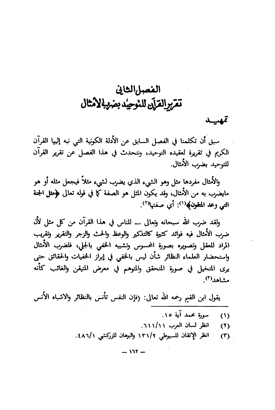 سبق أن تكلمنا في الفصل السابق عن الأدلة الكونية التي نبه إليها القرآن الكريم في تقريره لعقيدة التوحيد، ونتحدث في هذا الفصل عن تقرير القرآن للتوحيد بضرب الأمثال.