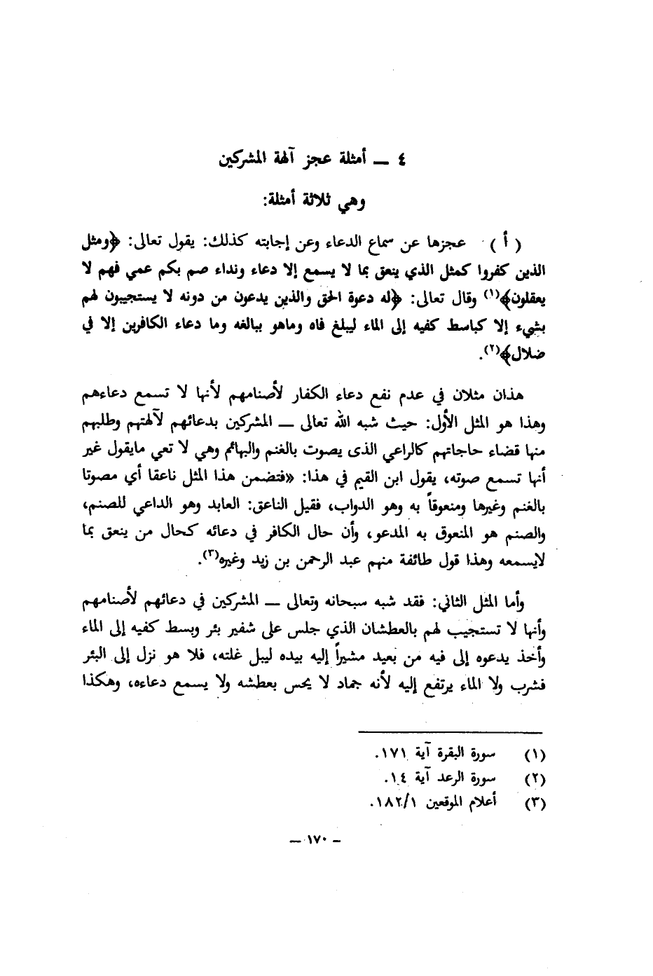 4- أمثلة عجز آلهة المشركين وهي ثلاثة أمثلة: