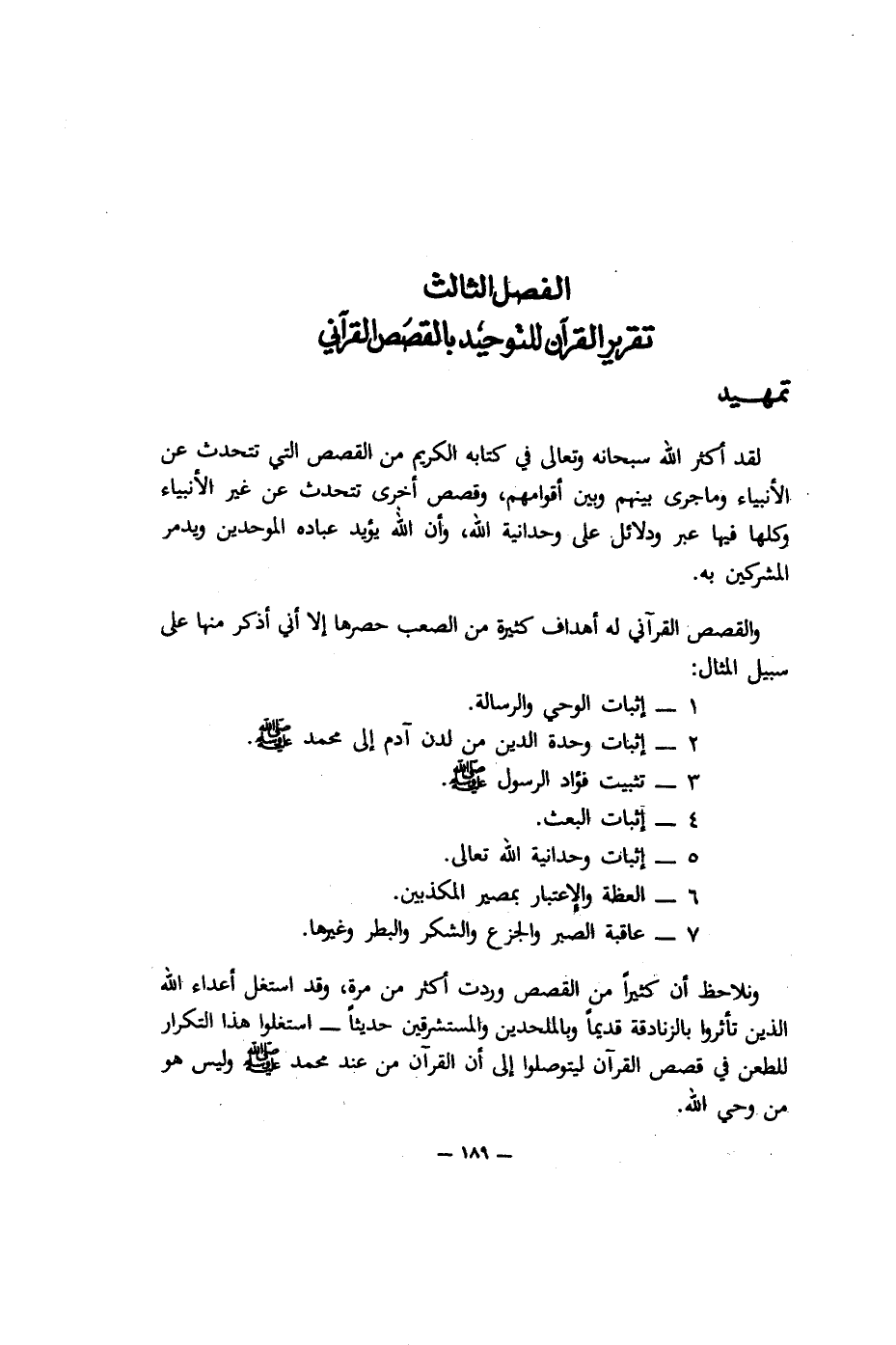 الفصل الثالث: تقرير القرآن للتوحيد بالقصص القرآني